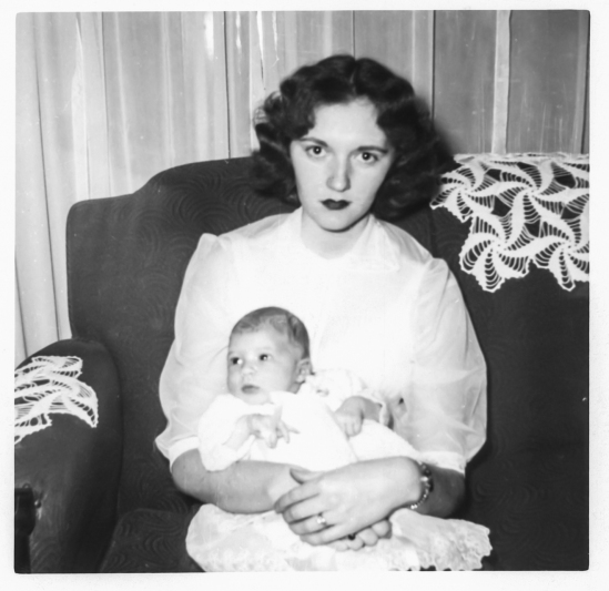 Neither Mom or Dad’s parents were able to attend the wedding in Texas. Â However, Mom and Dad took two trips to Massachusetts in the early 1950s, one after Frank was born, and the second after Susan was born. Â Nana and Grammy were in their early 40s.Â